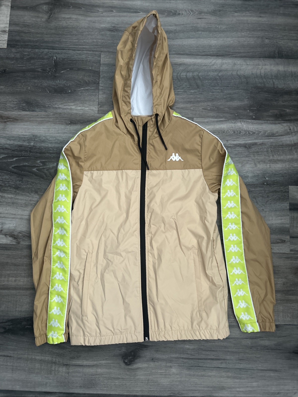 KAPPA Windbreaker 222 Dawson Banda Lime Logo Khaki Tan Small Hooded Jacket